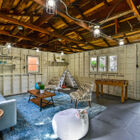 The partially-finished detached 2-car garage is situated behind a gate in the backyard. While it could be used as a garage, with a little imagination perhaps it could also be a studio, game room, or office.