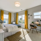 - Large owner’s suite features an ample walk-in closet, stylish bath, and vaulted ceiling and overlooks the rear garden