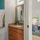 Throughout this splendid home, you will discover a host of thoughtful design touches and clever details. The living room offers convenient sliding glass doors, allowing you to enjoy a gentle cross breeze all the way through to the rear garden in the warmer months. The kitchen’s granite countertops match those of each of the home’s three baths, and the kitchen also features a gas range and stainless-steel microwave, dishwasher, refrigerator, and dual-compartment sink. Recessed lighting and ample windows keep the ground level well lit at all hours, while the dining room’s sliding glass doors to the rear garden imbue the home with a ubiquitous sense of connection to the outdoors.