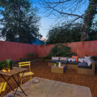 Entering this cheerful home past its flowering plants and lemon tree, you will find yourself in a series of light-filled open common areas, each more enchanting than the next. The modern cook’s kitchen and family and dining areas stretch before you, while the expansive living room lies just around the corner to your left. Bright and modern, with clean lines and large windows at each end, these spaces offer countless opportunities for convivial gatherings and everyday enjoyment. Beyond the dining area, you will find the lovely enclosed private rear garden and patio. Framed by trees, this appealing and versatile outdoor space is the perfect place to unwind or relax with friends. The ground level also boasts a convenient entry closet and half bath off the kitchen.