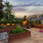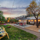 The versatile back yard is a gardener’s dream with raised beds for organic gardening, as well as an expansive patio for al fresco entertaining, and a lush lawn perfect for somersaulting children. A long driveway provides space for tandem parking, and a detached garage has great potential for use as a generous studio, office, or game room.