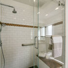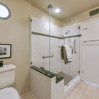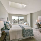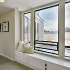 Ascend the staircase lit by a skylight, you find two additional bedrooms and a shared hallway bath. One bedroom features a large window which overlooks the boat slip and offers bay and marina views, skylight, and ample closet, while the other has soaring ceilings as well as a large closet. The upper level shared bath includes a large step-in shower with built-in seating, a granite-topped vanity, and spacious floor-to-ceiling cabinets.