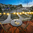 342 Tideway is a gorgeous 3BD/2.5BA home located on a quiet cul-de-sac and featuring the best of waterfront living, from a private 35-foot boat dock to a delightful rear deck sitting right on top of the water. As you make your way into this tranquil, vacation-like 2,067 square foot property, you first take in the spacious paver patio; you then enter the home via a one-of-a-kind, sleek and spacious entry solarium, complete with a fireplace, that could easily be fashioned as a dramatic dining room or family room. From the solarium, you enter the home and take in the common area, which is lit by tall windows that meet soaring ceilings, shares a double fireplace with the solarium, and looks out onto the marina. Step through the sliding glass doors from the living room and you are greeted by a spacious waterfront deck with spectacular bay views. Gorgeously situated at the turn of the complex, views sweep directly down the channel and out to sea. Also, since 342 Tideway is located on the lee side of the area’s wind patterns, the deck remains calmer year round. Look down and you see the home’s private 35-foot dock, which is accessible by way of a ramp descending from the deck; sailing out into the bay is a breeze from 342 Tideway.