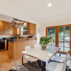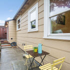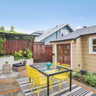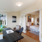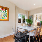 Just beyond the living room, the dining area and adjoining open kitchen provide immediate access to the home’s crown jewel: its stunning enclosed rear garden. This expansive exterior area offers multiple patios and sitting areas, plant beds, thornless blackberries, herbs, and trees (including plum, lemon, and a rare extra-tall stone pine). The dining room’s French doors open directly onto the garden, creating an enchanting indoor-outdoor flow. The ideal place to entertain, relax with friends, watch the squirrels play in the morning, lounge in a hammock, or unwind after a long day, the garden is your own private urban oasis.