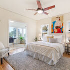 This home offers two beautiful bedrooms, including its wonderfully romantic owner’s suite, in which the owner’s bed chamber adjoins its own private glass-enclosed sunroom looking out over the bay. The perfect place to watch the sunset or enjoy the fireworks from the Oakland Coliseum, this relaxing and luxurious bonus space allows you to savor your home’s connection to its surroundings while lounging in your slippers and sipping your evening cocktail or morning coffee.