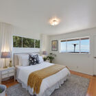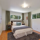 The home’s main level includes three bedrooms on the main level as well as a shared hallway bath with a tub and separate shower. The spacious rear bedroom features access to the deck as well as its own sweeping bay views that stretch from San Francisco to the San Mateo Bridge.