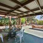 From the deck, a glance below you reveals the hallmark of this lovely home: its extensive rear gardens, an urban paradise with rich soil and graced with citrus trees, roses, and jasmine. (See an extensive list of plant species at 3625 Brunell below.) With bay views, multiple terraces, a greenhouse, and a covered patio, the gardens are both beautiful and versatile.