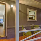 By way of a flight of stairs from the hallway, you find the lower level of 3625 Brunell, which has a versatile space that could easily be configured as a guest suite or home office. It includes a spacious common room with bay views and fireplace as well as a bath with shower. On the lower level you also find a laundry room, access to the garage, and bonus storage room as well as additional access to the home’s lovely gardens.