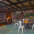 - Expansive terraced gardens with mature plantings, covered patio, and greenhouse