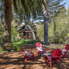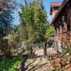 The expansive grounds surrounding the home are a verdant paradise. A pathway leads around the home to a wisteria covered arbor and vegetable beds that in the past have produced bumper crops of corn and tomatoes - perfect for a new urban garden. A flagstone patio is enclosed by a charming picket fence - an ideal spot for a barbecue or just relaxing in the sun amid the serenity of the sounds of birds and the Sausal Creek running behind.