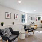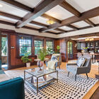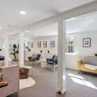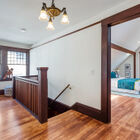 Adjacent to the dining room, and an absolute joy for any home cook, the huge eat-in chef’s kitchen has been renovated to a professional level with a large expanse of stone countertops, abundant cabinets, and recessed lights. Newer appliances include a Cafe refrigerator, Miele dishwasher, and five-burner Bertazzoni range and hood. A built-in hutch provides display space for cookbooks or kitchen collectibles, and two separate pantries provide additional space for plating a gourmet meal and storing nearly everything a home chef could want. At the far end of the kitchen French doors open onto a large deck - convenient for ferrying drinks and hors d’ oeuvres out to guests. Also at the end of the kitchen is a sunny guest room with a full bath.