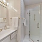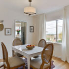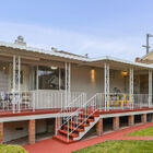 - Playfully elegant exterior detailing, including curving art deco-style steps, railings, and awning and original garage-level decorative window gratings