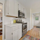 Once inside, you will find yourself in a series of comfortable rooms thoughtfully arranged to maximize the feeling of space; this home offers several distinct areas within its 1439 square feet and rear garden, giving you a host of options for indoor and outdoor enjoyment. The vast living room, anchored by a stately fireplace and made to feel all the more grand by its soaring ceilings, is the perfect place for enjoying time with friends and loved ones, while the light-filled updated kitchen and bright and cheerful dining room are the ideal spaces to start the day. The owner’s suite offers a walk-in closet, updated bath with skylight, and exciting extra feature: a bonus room, perfect for a nursery or your own private office, overlooking the rear garden. With sliding glass doors to the covered back porch, this lovely space is flooded with natural light.