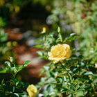 Flowering plants and exotics Roses (fragrant old fashioned, tea, climbers, over a dozen varieties) Abutilon (flowering maple) multiple varieties Hydrangeas Cup and Saucer vine Rare Japanese Tree Peonies Dwarf blue spruce Dwarf red maple Smoke tree Perennial daffodils in sidewalk planting median Wisteria Angels Trumpet (two varieties) Jasmine (two varieties)