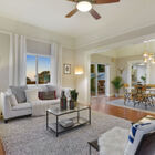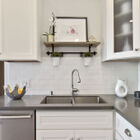 - Eat-in chef’s kitchen with stainless steel appliances, quartz countertops, and stylish tile backsplash