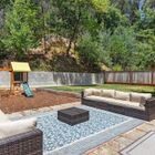 The huge, level-out enclosed backyard has something for everyone. The expansive paved patio is an entertainer’s dream with plenty of room for a neighborhood party or casual barbeque. Nearby, a children’s play structure is a treat for the little ones, and a lush lawn is shaded by a blooming apple and lemon trees. Whispering eucalyptus trees along the fence provide privacy, and when everyone goes home this is the perfect place to put your feet up and watch the stars come out.