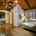 Housed in a converted brick and timber warehouse originally built in 1917, 4300 Horton Street, Loft Suite 1 is a spacious 1+BD/1.5BA, 1598 sq ft modern live/work loft in downtown Emeryville. This coveted corner unit is bathed in sunlight pouring through expansive, two-story walls of steel warehouse-style windows. Industrial design touches include soaring beamed timber ceilings and low walls of exposed brick and plaster.