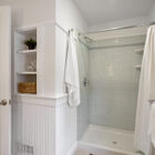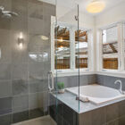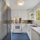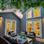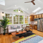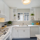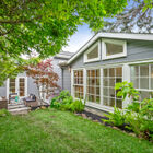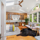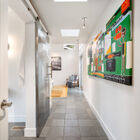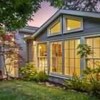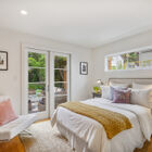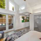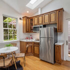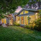 Adjacent to the lovely backyard is a recently constructed, 330 square foot detached cottage. The vaulted ceiling, recessed lighting, 4 skylights, and a stunning wall of windows create a light-filled retreat, studio, or guest suite. Built-in shelving flanks an alcove ideally suited for a desk. The corner kitchenette boasts stone countertops, and a full bath is complete with a step-in shower. Thoughtfully designed, the cottage is beautifully constructed and protected by a French drain.