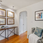 Tall corner windows flood the delightful living room with light, an excellent place to put your feet up and watch the sun slowly sink into the bay. Period arched doorways, brick fireplace, and hardwood floors add distinction and warmth. The updated kitchen features a gas range, stone countertops, and ample storage.