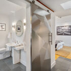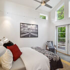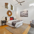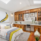 Peter Engel, published author of several Origami books, designed the owner’s suite with stylish touches including an intriguing origami-inspired barn door in the bath and swinging closet doors in the bedroom. The spacious suite boasts vaulted ceilings with transom windows, modern ceiling fan, and clever accent lighting. The spa-like bath is a modern oasis with oversized, deep jetted tub, pedestal sink, and walk-in tiled shower.