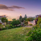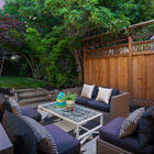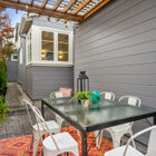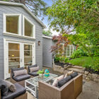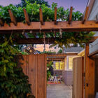 The original driveway has been repurposed to create a magical, paved, outdoor courtyard with a lovely arbor enclosed by custom redwood fences and gates. Surrounding the paving stones are fuji apple, fig, and persimmon trees, as well as beautiful plantings with uplights and a smart irrigation system for low maintenance and optimal low water consumption. String some lights around this spacious courtyard, and throw the ultimate summer party.
