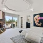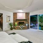 - Owner’s suite features a wide brick wood-burning fireplace and spacious walk-in closet and opens onto the deck