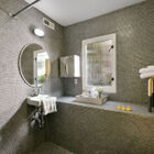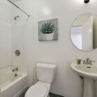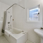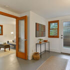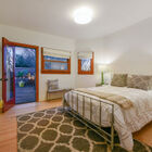 Back within the entry level of this remarkable home is a sunny bedroom with access to the rear deck as well as a large closet with custom shelving, plus a hallway bath with vintage-style hexagon tile and a shower over tub. A second spacious bedroom graces the entry level, and hardwood floors throughout provide gracious continuity.
