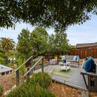 The expansive back patio runs the length of the house with plenty of room to host a summer luncheon or barbecue for family and friends. Above the patio is a gorgeously terraced garden with a plant-lined path leading to a second patio hardscaped with bench seating and raised planting boxes, and a nearby tree swing. This tranquil spot with dramatic views is the perfect place to end a hectic day, watching the stars come out one by one.
