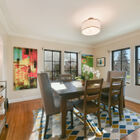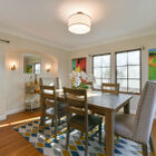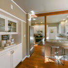 On the other side of the entry, multipaned French doors open onto the elegant formal dining room with two sets of mullioned windows that fill the room with natural light. Large enough for celebration dinners with extended family and friends, this is a room gracious enough for intimate candle-lit dinners as well with its burnished oak floors, crown molding, and period alcove with distinctive sconces.