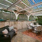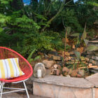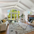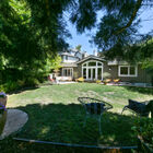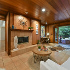 Through the dining room is a light-filled living room with dramatic vaulted ceilings and a gorgeous wall of windows. A marble and wood fireplace graces one wall. Glass doors lead to an expansive enclosed backyard with lawn, lush, mature landscaping, stone patio, and koi pond - ideal for entertaining or relaxing away the stresses of the day.