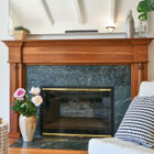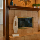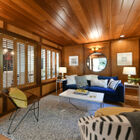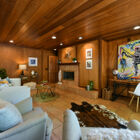 Adjacent to the living room is a large bonus room with wood paneling, tile floor, and brick fireplace. Consider a private study or den with overstuffed easy chairs, or a home office or well-appointed guest room.
