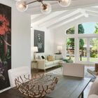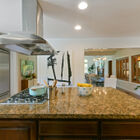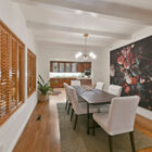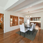 For ease of entertaining, the kitchen also opens onto a lovely formal dining room with high beamed ceilings and gleaming hardwood floors. Large enough for celebration dinners with extended family and friends, this is a room gracious enough for intimate candle-lit dinners as well.