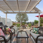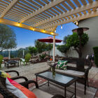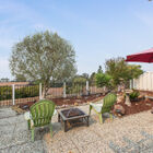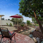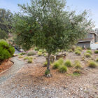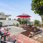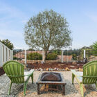 The delightful enclosed back garden runs the width of the home with a brick patio beneath a charming lighted pergola - a tranquil space for entertaining or just looking out over the sunset after a long day. Beautifully landscaped with a mature olive tree, palms, and succulents, the garden is a private retreat and a haven for birds with its quiet fountain and birdbaths.