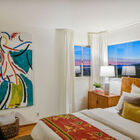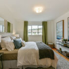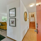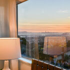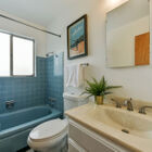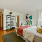 Back inside the home, a short staircase leads you to the home’s upper level, which has a rare four-bedroom floor plan as well as hardwood floors throughout. On your right is a lovely bedroom with bay views, while on your left a second bedroom overlooks the enchanting rear garden. Pass farther down the hallway and you will find a corner bedroom with garden and San Francisco, and Golden Gate and Bay Bridge views. A shared hallway bath with vintage accents and a shower over tub is also found on this level, as is the delightful and expansive owner’s suite, which features two large closets, a picture window with bay and bridge views, and a private bath with shower stall.