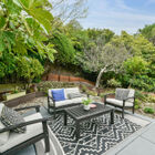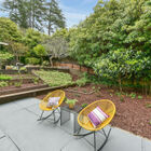 Through sliding glass doors in the dining room, you can step out and explore the rear garden, which is terraced, delightfully landscaped, and has upper and lower patios, as well as a trellis and bay views.