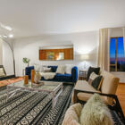 As you enter this welcoming 1,997 square foot home, you are immediately drawn to its living area, which is graced by hardwood floors, a brick fireplace with raised hearth, and picture windows through which you can take in the view, which includes the Marin Headlands and the Bay and Golden Gate Bridges. Pass toward the rear of the home and you will find a spacious, light-filled dining area accented with paneling and the home’s eat-in chef’s kitchen, complete with a breakfast bar and window overlooking the manicured enclosed rear garden.