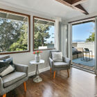 - The owner’s spaces take up the entire upper level and enjoys a host of charming touches, including vaulted ceilings, private terrace with bay views, gorgeous modern bath, and luxurious closet and changing area