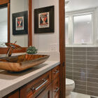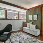 - Thoughtful details throughout, including alcove ceilings throughout the main level; tiled floors that subtly connect the entry, kitchen, and dining room; built-in bench on the terrace; and new cabinetry and sleek modern fixtures and tiling in each of the baths