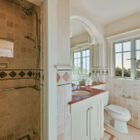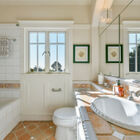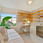 Two additional bedrooms, each with sun drenched corner windows and large closets with built-in shelves, share a renovated hall bath. The lovely updated bathroom has beautiful tile and shower over an extra deep tub for soaking.