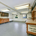 On the lower level is a guest suite with full bath accessible via an interior staircase and a separate entrance to the yard. On one side of the suite is a laundry room with utility sink, and on the other is another surprise: a large, well-equipped workshop with utility sink.