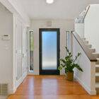 At the east end of the home, a large, sunny family room is surrounded by windows and filled with light. Adjacent to the kitchen, the family room features a walk-in shelved pantry and additional closets for storing games, toys, extra throw pillows, and cozy afghans. Sliding glass doors open to a deck overlooking the treetops - take your evening coffee outside, put your feet up, and watch the stars come out. Also on this level is a conveniently placed powder room with pedestal sink.