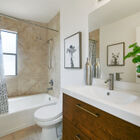 The bedrooms share a full bath with tile floor, a windowed shower over tub, and a new (stone-topped?) vanity.