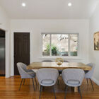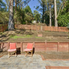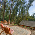 - Expansive rear yard and patio area framed by tall eucalyptus trees enables you to enjoy your meals outdoors year-round