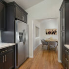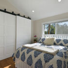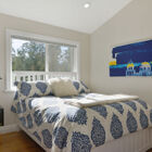 Just beyond the common areas, you will find the owner’s suite and additional bedroom, separated by a short hall graced with an ingenious design touch: a wall whose subtle warm gray wallpaper twig motif perfectly echoes the home’s sylvan setting. The owner’s bath is a glorious place to start and end the day: With a large open shower with glass pony door, acrylic tub and dual sinks with brushed nickel fixtures, and gorgeous tile and hardware everywhere you look, this newly renovated space sparkles with style and sophistication.