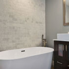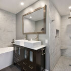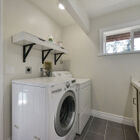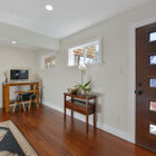 This home has two entrances, one to its smartly designed lower level and one to its expansive main floor. On the lower level, you will find the wonderfully versatile and newly renovated entry suite, which features an all-purpose office/mudroom/guest area, convenient laundry nook, superbly updated full bath, and charming bonus feature: a built-in daybed perfect for curling up with a book or housing a guest. This attractive and useful series of spaces sets the tone for the entire home; with sleek modern fixtures, an elegant shower, and warm gray floor tile subtly picked up by both the bath and laundry areas, these rooms embody a perfect marriage of form and function.