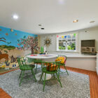 A finished basement room with recessed lighting and windows features built-in shelves and cabinets, making it ideal for use as a playroom or workroom. Also in the basement, you’ll find a laundry room with W/D and plenty of additional storage.