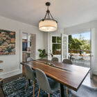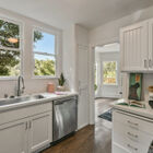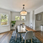 On the other side of the dining room, the modern kitchen stylish updates - stone countertops, subway tile backsplash, and a new gas range. The charming breakfast nook is lit by corner windows, and a vintage built-in hutch provides space for storage and display. Beyond the kitchen, the attached garage has been finished to provide space for a home office or studio.