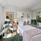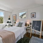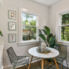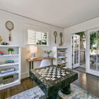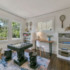 Natural light pours into the adjacent bonus room - two sets of double hung windows overlook the expansive deck and period built-in shelves flank casement windows on the adjoining wall. Glass doors open onto the front patio and enchanting front garden.