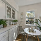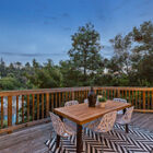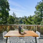 In the sunken formal dining room traditional double hung windows flank multi pane French doors leading onto an expansive wrap-around deck overlooking the treetops - a beautiful spot for alfresco entertaining or just relaxing as the stars appear in the night sky.