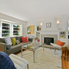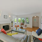 Screened from the street by trees and bamboo, a partly shaded deck runs the width of the home, creating a tranquil woodsy space for morning coffee or a cold drink on a summer evening. Inside, the spacious living room is filled with natural light with three windows overlooking the deck and a bay window overlooking the lovely backyard. A fireplace with wood stove insert provides extra warmth on cold winter evenings.